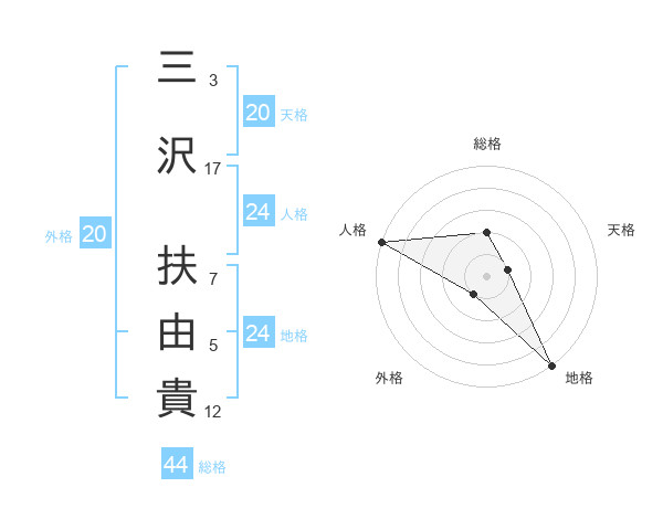 三沢 扶由貴さんを姓名の画数から五運を鑑定