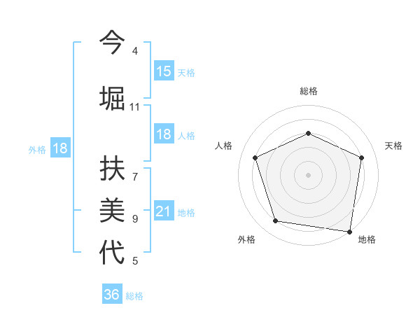 今堀 扶美代さんの天格は15画の4点!