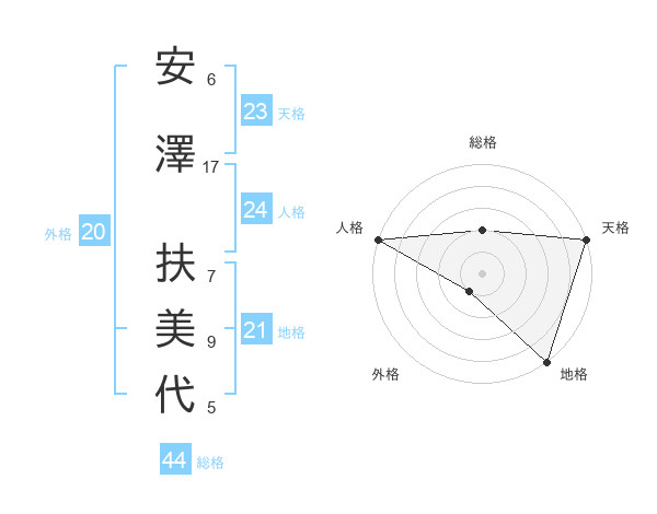 安澤 扶美代さんの総格は44画の2点!