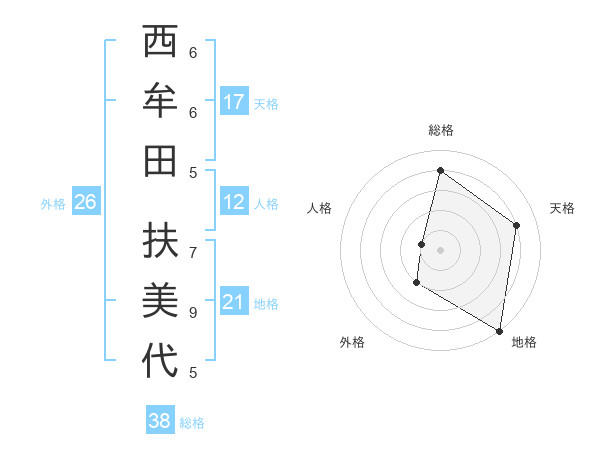 西牟田 扶美代さんを姓名の画数から五運を鑑定