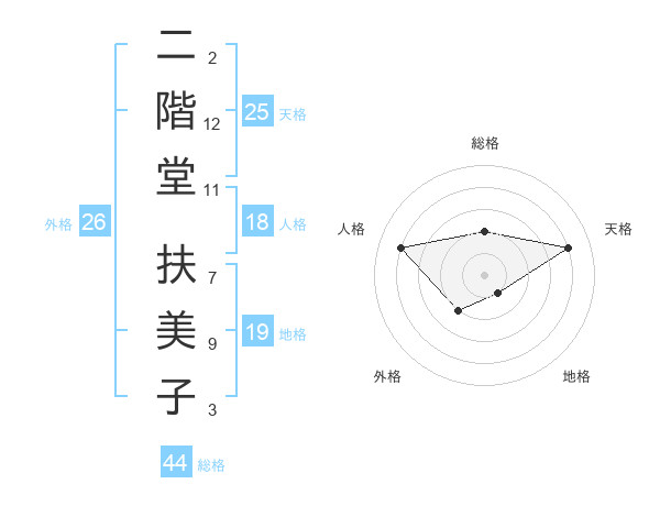 二階堂 扶美子さんを姓名の画数から五運を鑑定