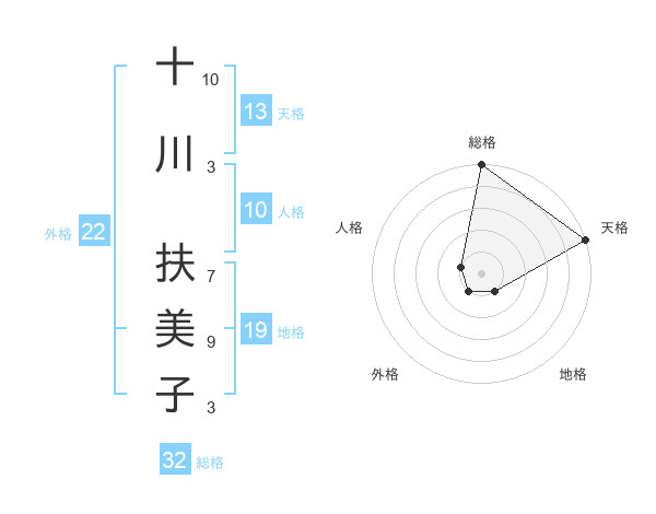 十川 扶美子さんを姓名の画数から五運を鑑定