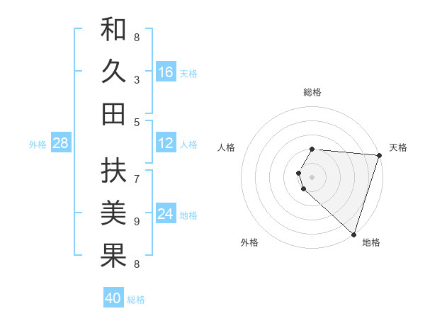 和久田 扶美果さんを姓名の画数から五運を鑑定