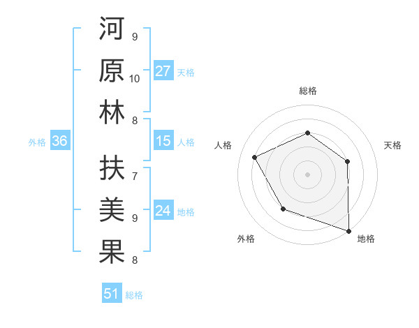 河原林 扶美果さんの総格は51画の3点!