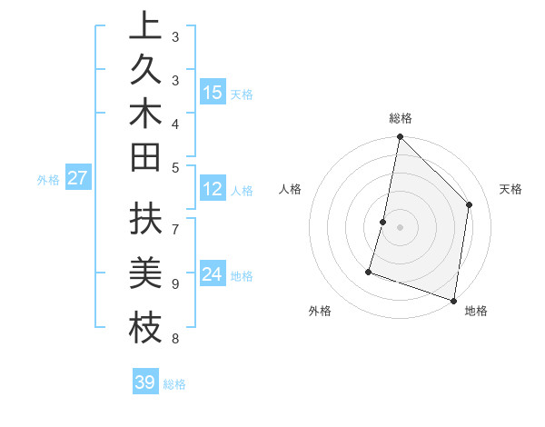 上久木田 扶美枝さんの総格は39画の5点!