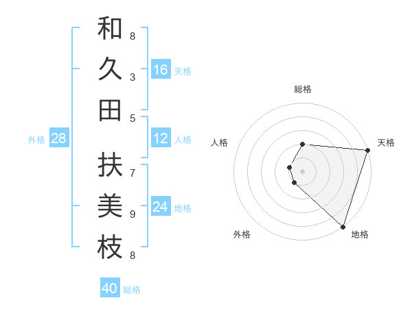 和久田 扶美枝さんを姓名の画数から五運を鑑定