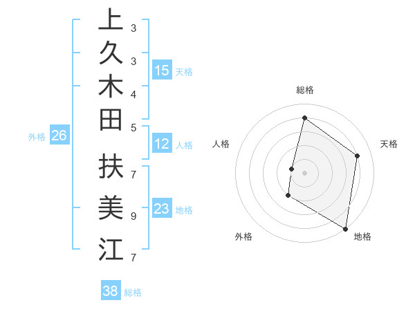 上久木田 扶美江さんを姓名の画数から五運を鑑定