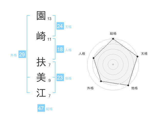 園崎 扶美江さんの総格は47画の5点!
