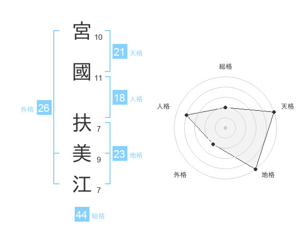 宮國 扶美江さんを姓名の画数から五運を鑑定