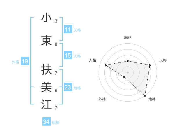 小東 扶美江さんを姓名の画数から五運を鑑定