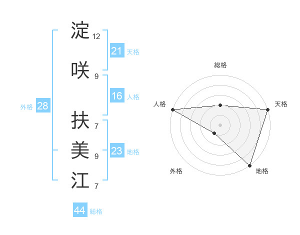 淀咲 扶美江さんを姓名の画数から五運を鑑定