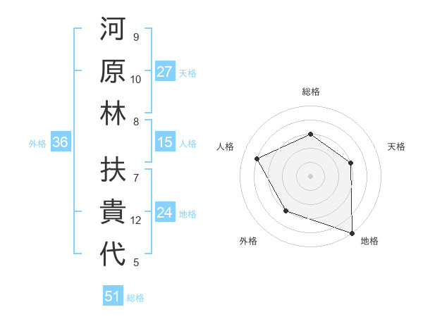 河原林 扶貴代さんの総格は51画の3点!