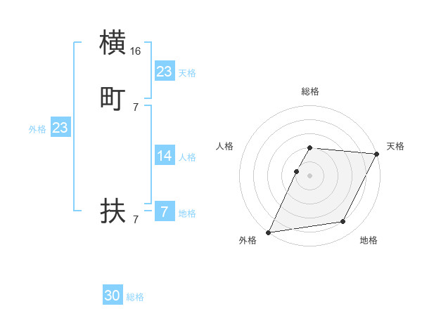 横町 扶さんの総格は30画の2点!