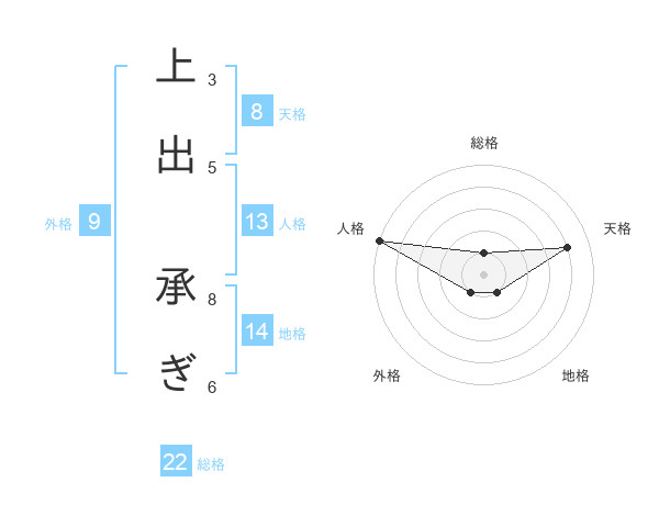 上出 承ぎさんの総格は22画の1点!