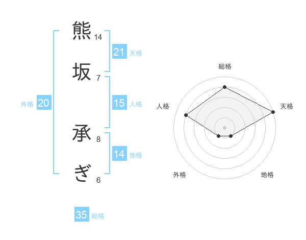 熊坂 承ぎさんを姓名の画数から五運を鑑定