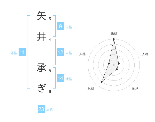 矢井 承ぎさんの総格は23画の5点!