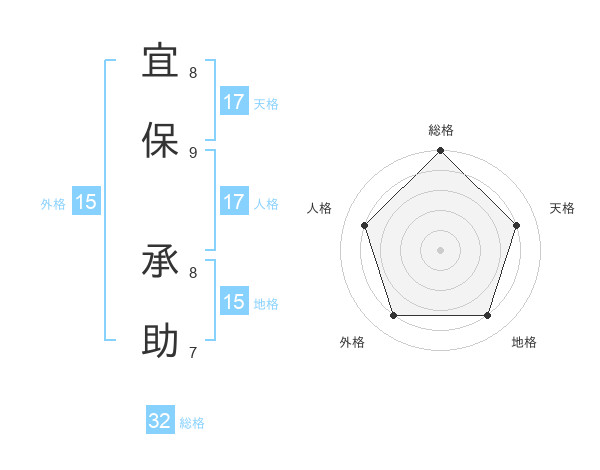 宜保 承助さんの天格は17画の4点!