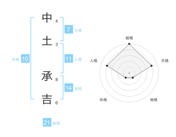 中土 承吉さんの総格は21画の5点!