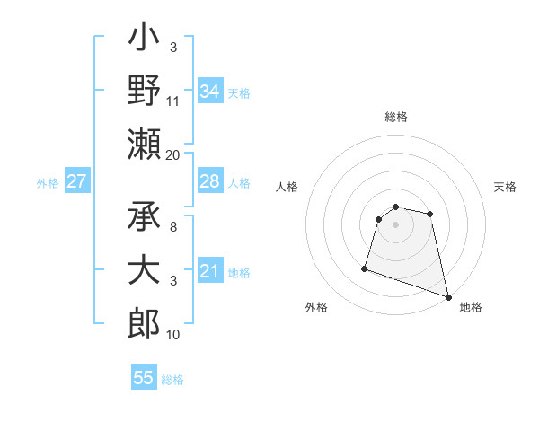 小野瀬 承大郎さんを姓名の画数から五運を鑑定
