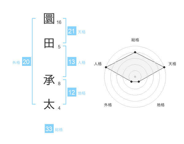 圜田 承太さんの天格は21画の5点!