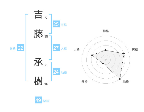 吉藤 承樹さんを姓名の画数から五運を鑑定