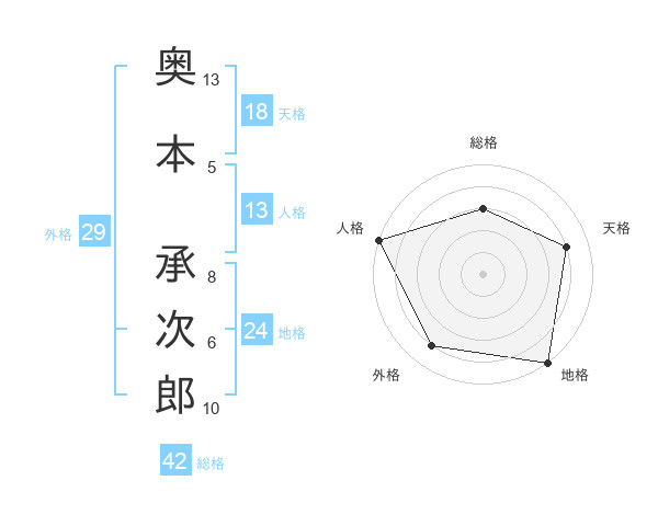 奥本 承次郎さんの地格は24画の5点!