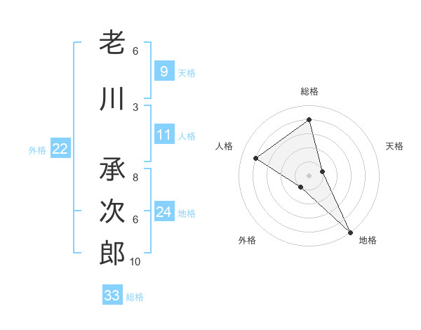 老川 承次郎さんの総格は33画の4点!