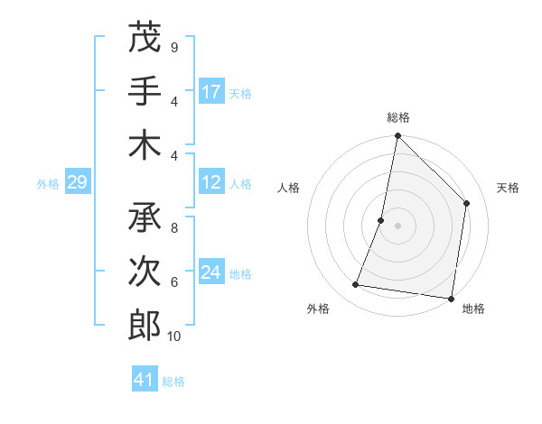 茂手木 承次郎さんの総格は41画の5点!