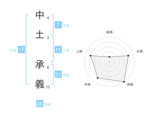 中土 承義さんの外格は17画の4点!