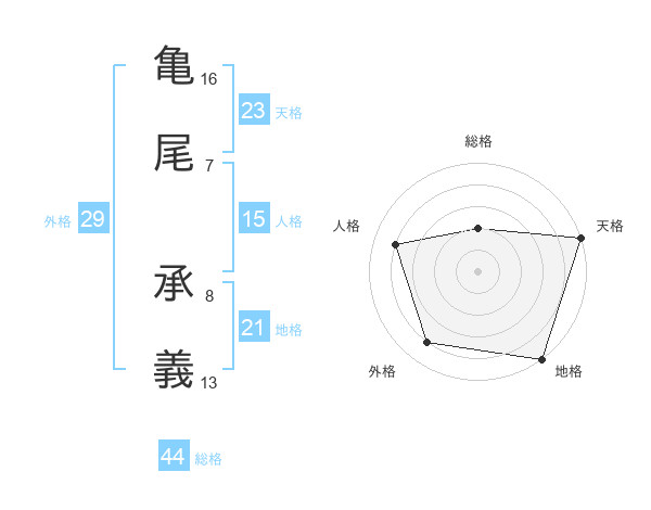 亀尾 承義さんの総格は44画の2点!
