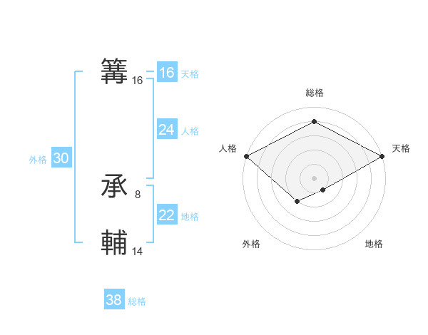 篝 承輔さんの総格は38画の4点!