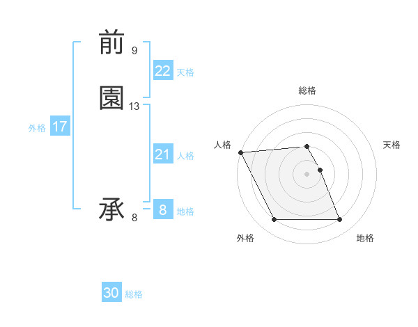 前園 承さんの外格は17画の4点!