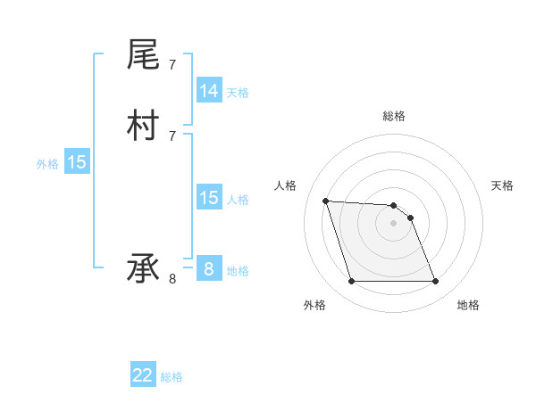 尾村 承さんの総格は22画の1点!