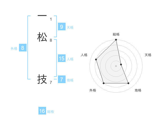 一松 技さんの総格は16画の5点!