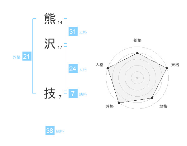 熊沢 技さんの外格は21画の5点!