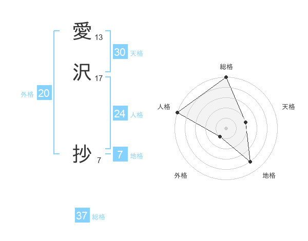 愛沢 抄さんを姓名の画数から五運を鑑定