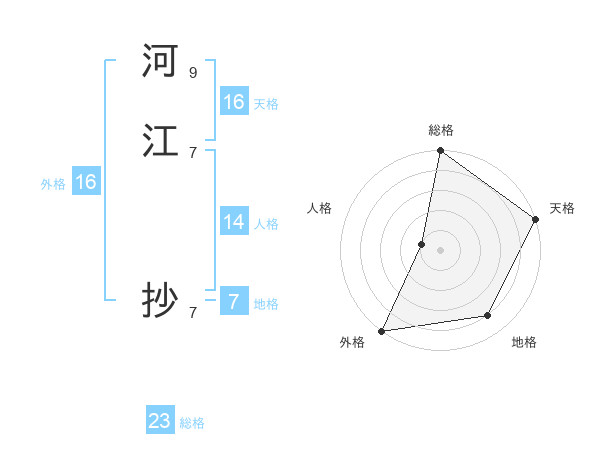 河江 抄さんの総格は23画の5点!