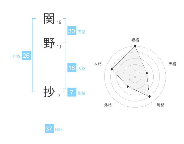 関野 抄さんの総格は37画の5点!