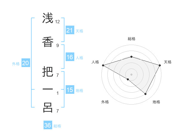 浅香 把一呂さんを姓名の画数から五運を鑑定