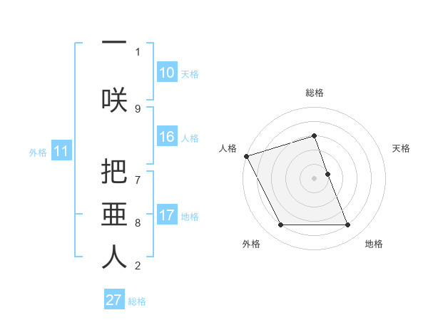 一咲 把亜人さんの総格は27画の3点!