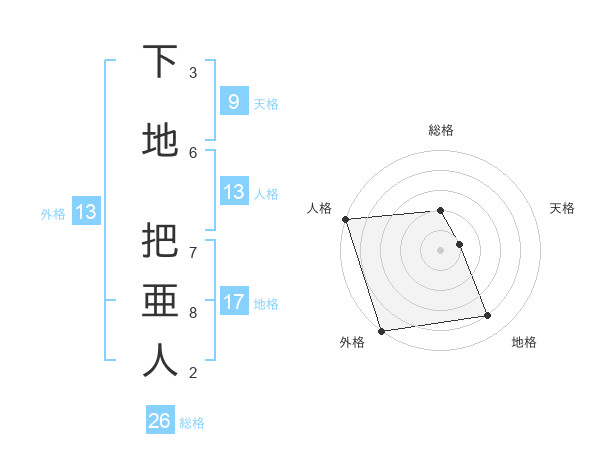 下地 把亜人さんを姓名の画数から五運を鑑定