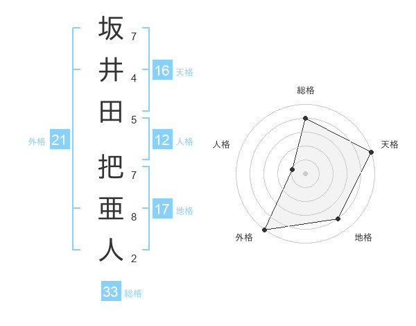 坂井田 把亜人さんの天格は16画の5点!
