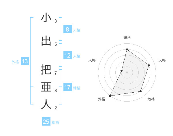 小出 把亜人さんを姓名の画数から五運を鑑定