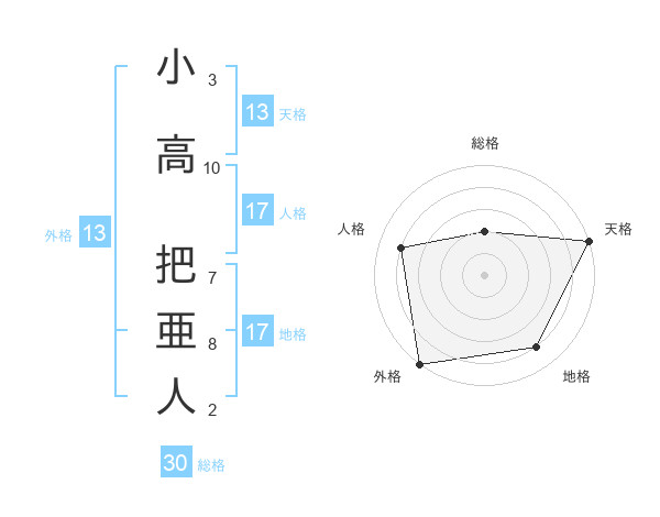 小高 把亜人さんを姓名の画数から五運を鑑定