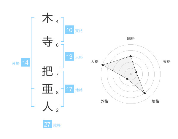 木寺 把亜人さんの総格は27画の3点!