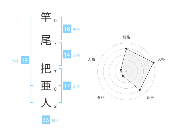 竿尾 把亜人さんの総格は33画の4点!