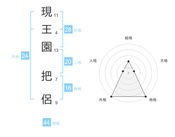 現王園 把侶さんを姓名の画数から五運を鑑定