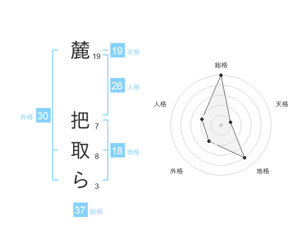 麓 把取らさんの総格は37画の5点!