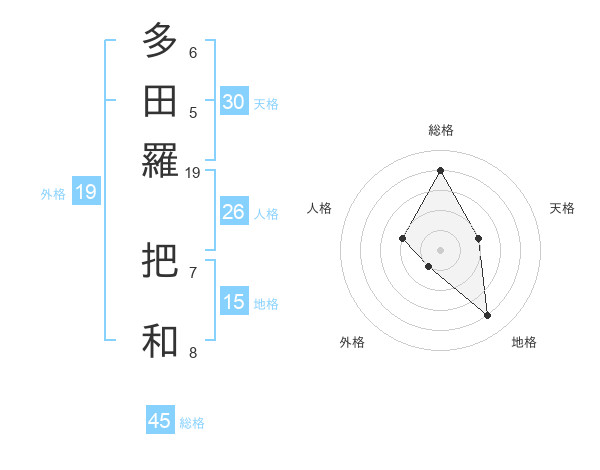 多田羅 把和さんを姓名の画数から五運を鑑定