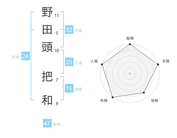 野田頭 把和さんを姓名の画数から五運を鑑定